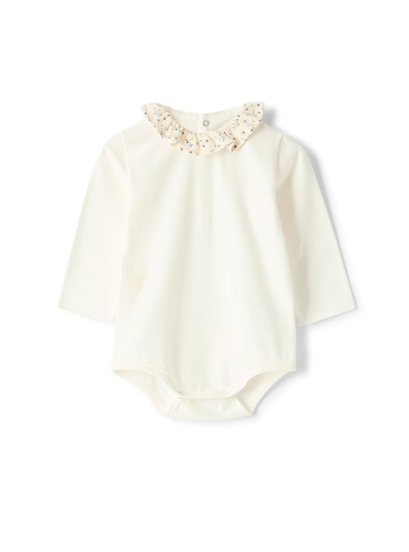 Bomullsbody med söt krage i blommigt tyg i manchester från Teddy & Minou.