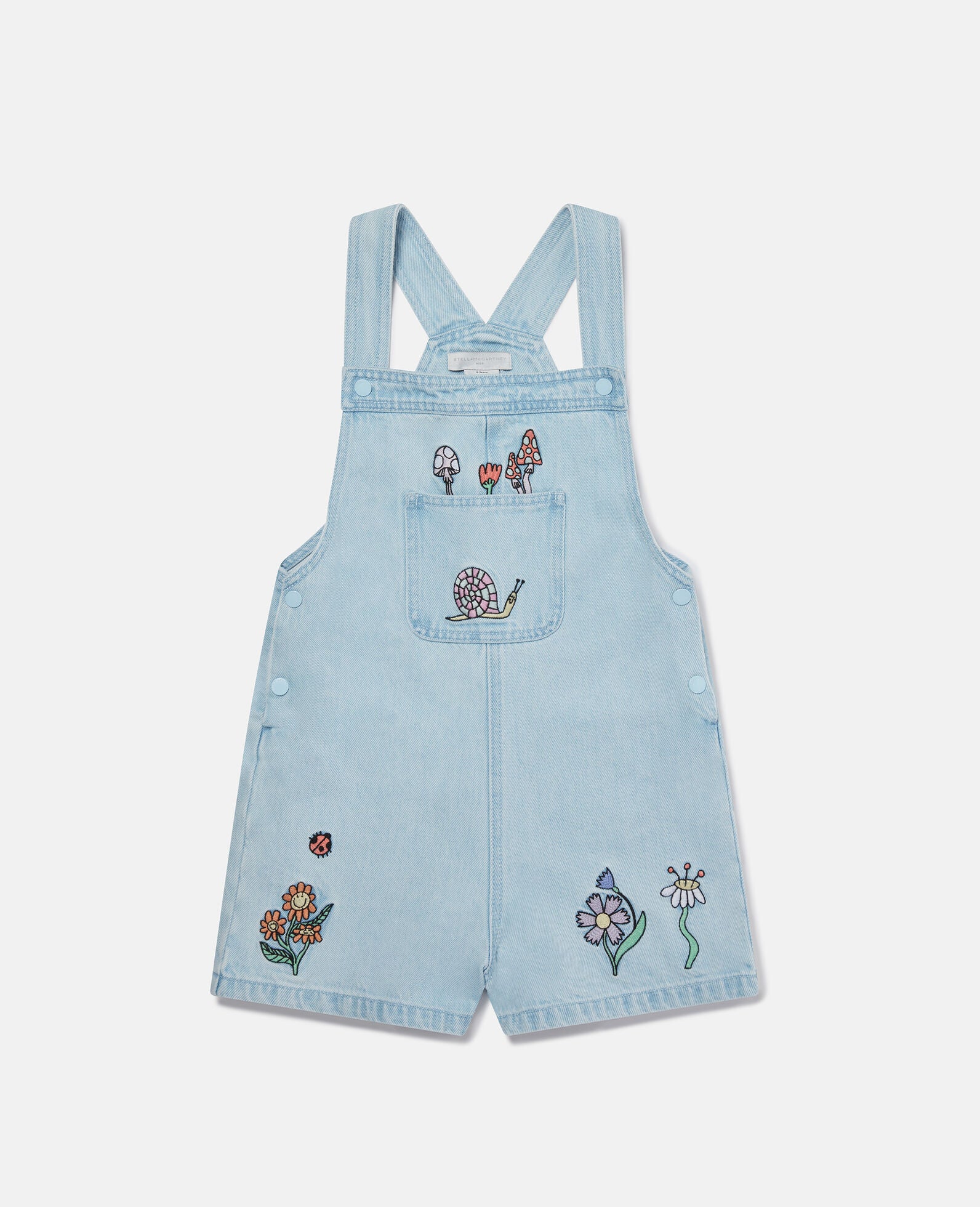Hängselbyxa med broderier inspirerat av naturen med blommor, svampar och insekter.