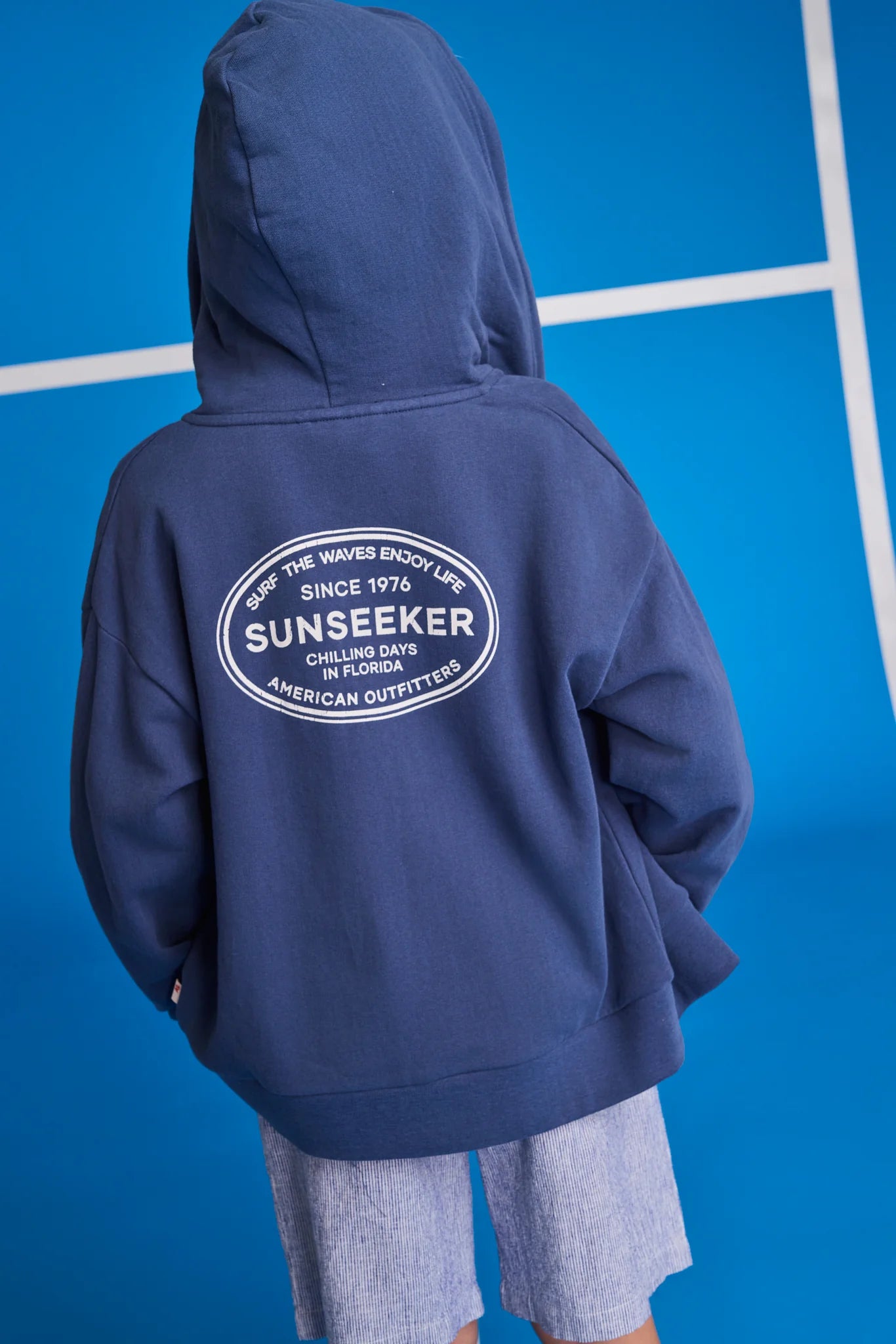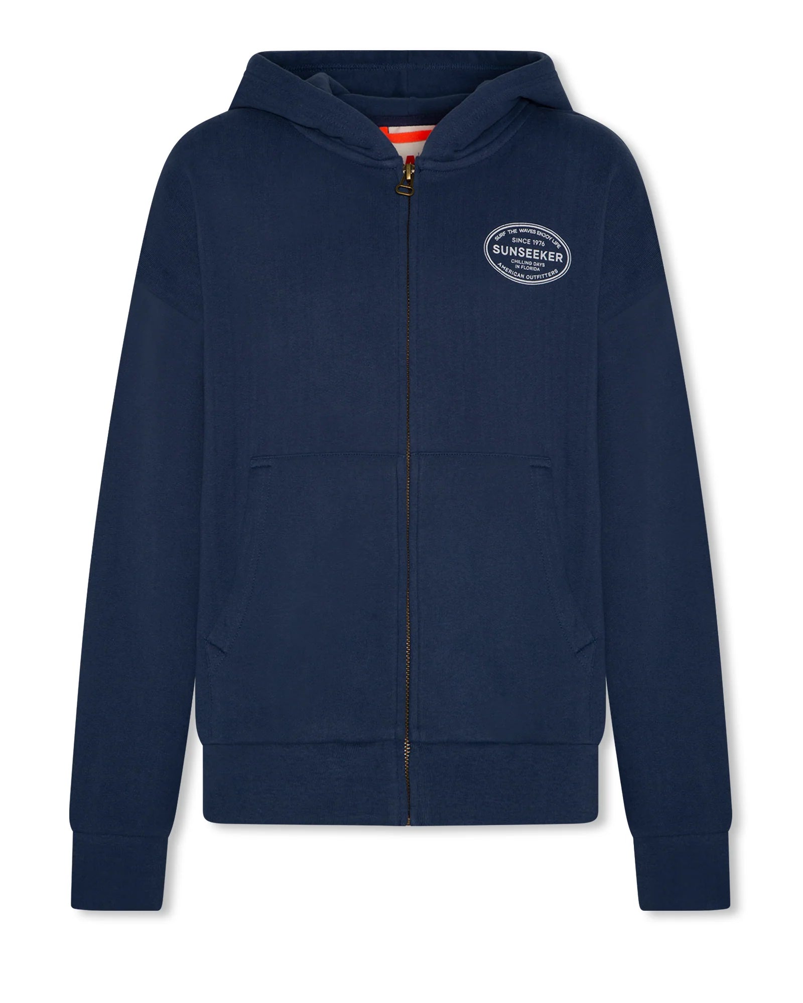 Hoodie från AO76 med dragkedja, fickor fram och luva. Med tryck inspirerat av sommaren, sol och bad.