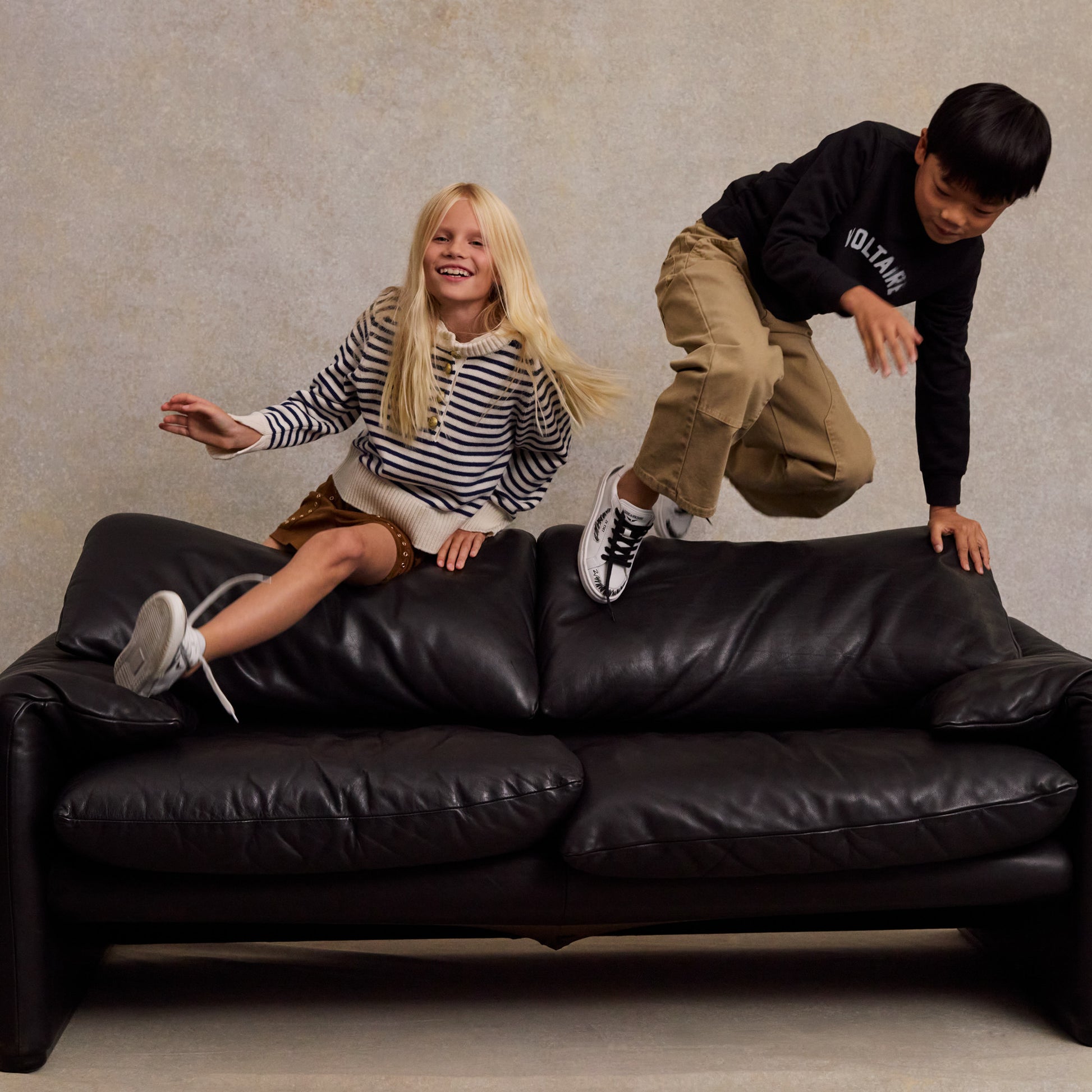 Stickad pullover från Zadig & Voltaire. Klassiskt vita och mörkblå ränder med guldknappar.
