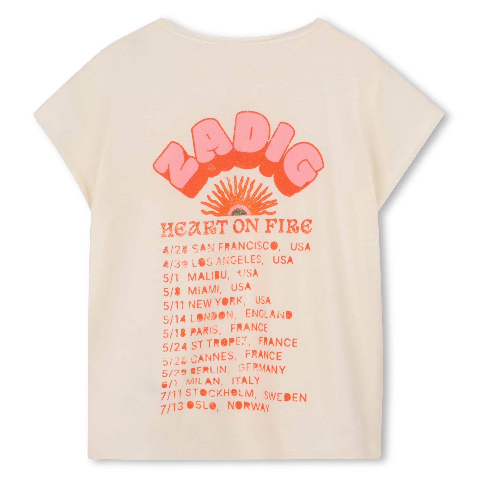 Cremevit T-shirt från Zadig & Voltaire med sommar och festivalinspirerat tryck.